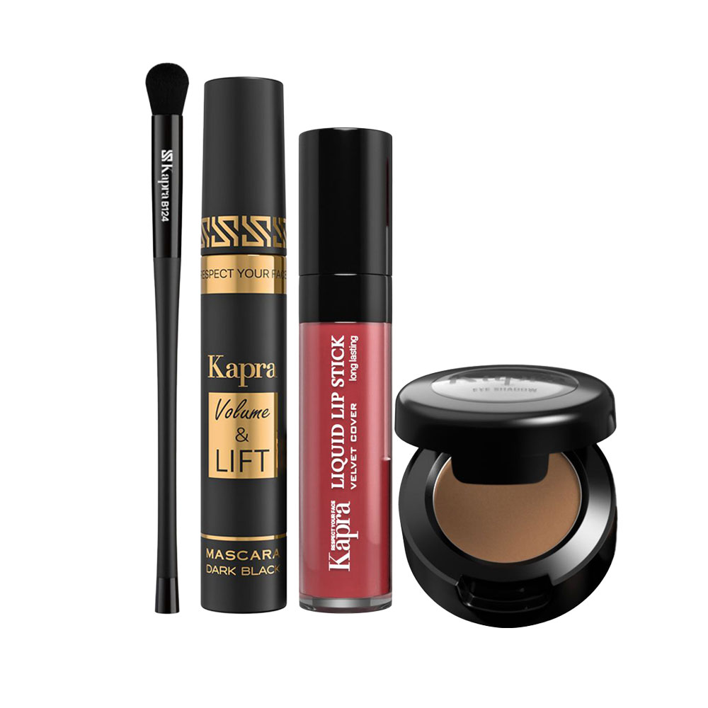 شامل: رژلب مایع ولوت L21، ریمل ولوم اند لیفت، سایه چشم تک رنگ 808، براش ترکیبی سایه و کانسیلر