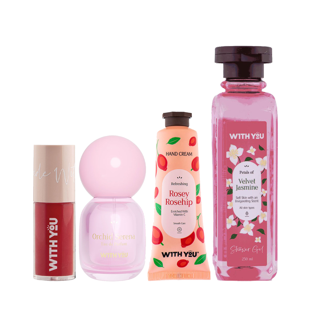 شامل: ادوپرفیوم ارکید سرنا زنانه، شامپو بدن ولوت جاسمین، کرم مرطوبکننده دست گل رز و ویتامین C، تینت رنگی لب و گونه C2 رز