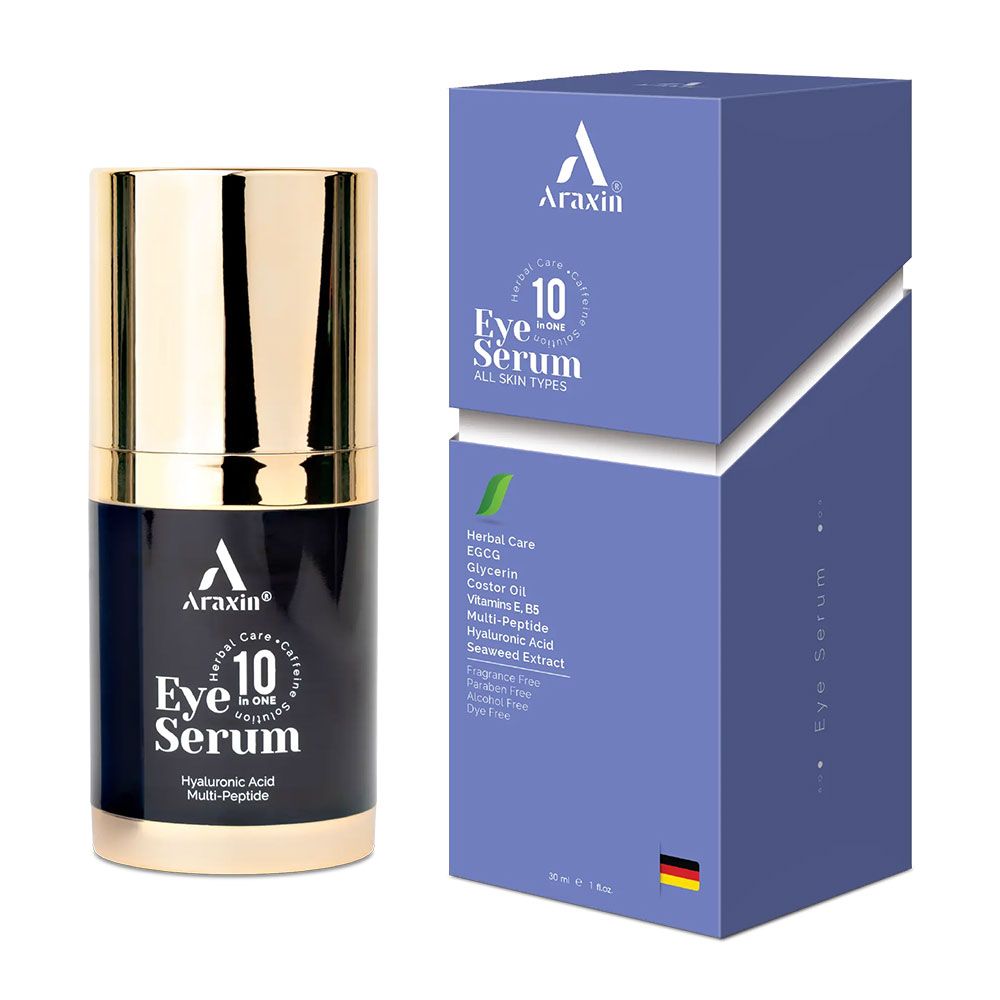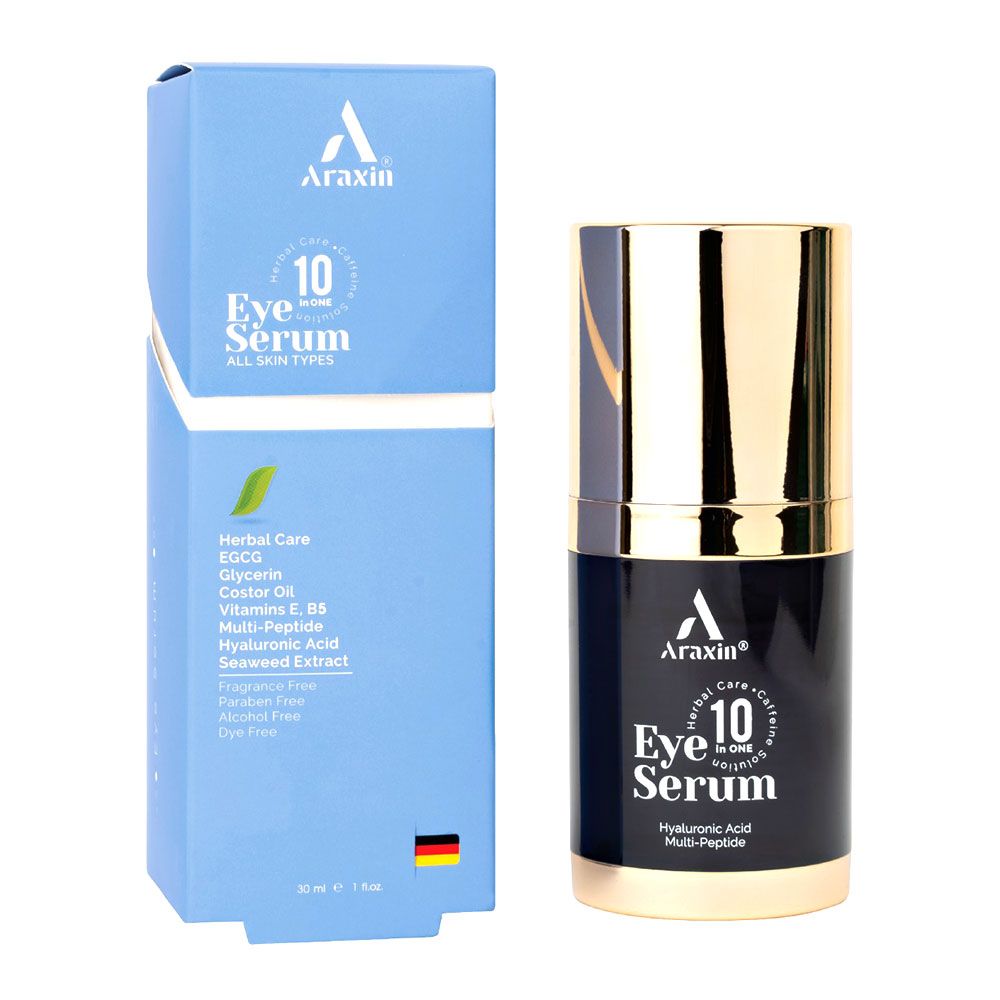 اطراف چشم نازکترین بخش پوست بدن محسوب میشود. بنا به دلایل مختلف مانند کمشدن آب بدن، قرار گرفتن در معرض نور خورشید، بیماری، مصرف داروی خاص، افزایش سن، کمخوابی، استرس یا هر دلیل دیگری، این بخش از پوست صورت، آب و چربی ضروری خود را از دست میدهد و دچار عارضههایی همچون کبودی، گود افتادگی یا چین و چروک میشود. برای از بین بردن این عارضهها یا جلوگیری از بروز آنها، بهتر است از محصولات تخصصی دور چشم استفاده شود. سرمهای دور چشم، فرمولاسیون سبکی دارند و خیلی سریع جذب پوست میشوند. بنابراین تقریبا همه افراد با هر نوع پوست میتوانند از مزایای سرم دور چشم تخصصی بهره بگیرند. سرم تخصصی دور چشم آراکسین، محصولی ویژه برای مراقبت پوست اطراف چشم است. این سرم برای رفع تمامی مشکلات رایج پوست در اطراف چشم طراحی شده است. فرمولاسیون آن نیز با ترکیبی از چندین فناوری نوآورانه پپتاید و مواد قدرتمند و فعالی نظیر کافئین، جلبک دریایی ، اپی گالوکاتچین گالاتیل گلوکزید(EGCG) و ... ساخته شده است.