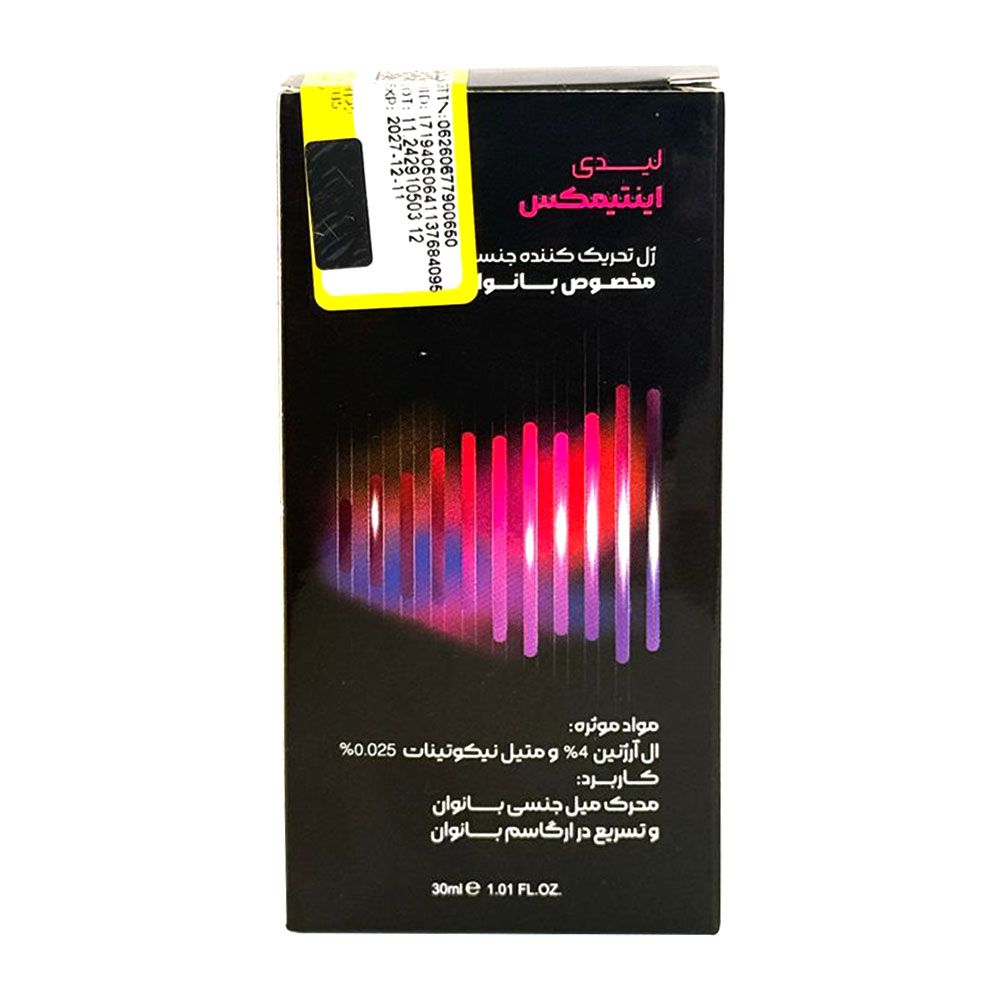 ژل لیدی افزایش میل جنسی و تقویت ارگاسم بانوان 30 میل اینتیمکس، یک محصول کاملا تخصصی برای بهبود عملکرد جنسی و افزایش لذت جنسی در خانم ها است که با بهره گیری از ترکیبات موثر مانند: ال آرژنین 4% و متیل نیکوتینات طراحی شده است. این ترکیبات با افزایش گردش خون موضعی در ناحیه تناسلی، به تحریک بیشتر، افزایش حساسیت و تسریع در رسیدن ارگاسم کمک می کنند. ال آرژنین به عنوان یک آمینو اسید شناخته شده، در بدن به نیتریک اکساید تبدیل می شود. در نتیجه ناحیه تناسلی حساس تر می شود و تحریک پذیری افزایش می یابد.