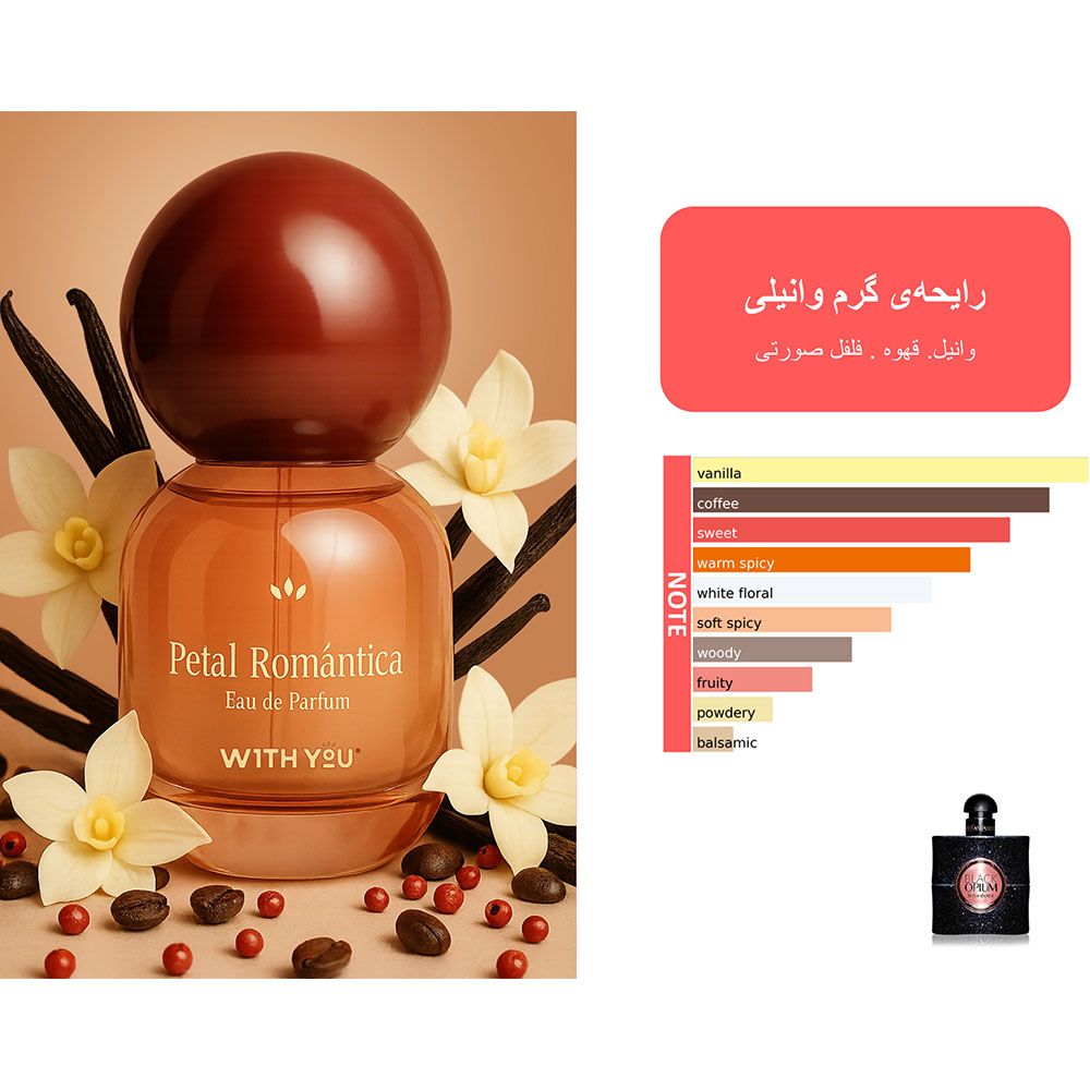 ادوپرفیوم پتال رمانتیکا زنانه عطری است که با هر اسپری، داستانی از عشق و جسارت را روایت میکند. این رایحهی منحصربهفرد، ترکیبی دلنشین از وانیل شیرین، قهوهی معطر و فلفل صورتی است که با گرما و لطافت خود، حس زنانگی عمیق و پرشوری را در فضا پخش میکند. پتال رمانتیکا تنها یک عطر زنانه نیست؛ بیانی شاعرانه از عشق، لطافت و جسارت زنانه است. ترکیب خاص و دلانگیز آن، رایحهای ماندگار و پرانرژی خلق میکند که در تمام طول روز همراه شما است و امضای خاص شما را شکل میدهد.