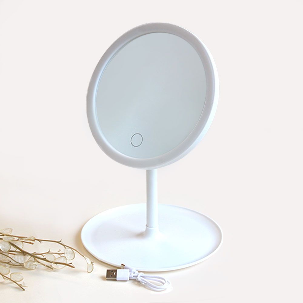 آینه رومیزی ال ای دی قاب سفید