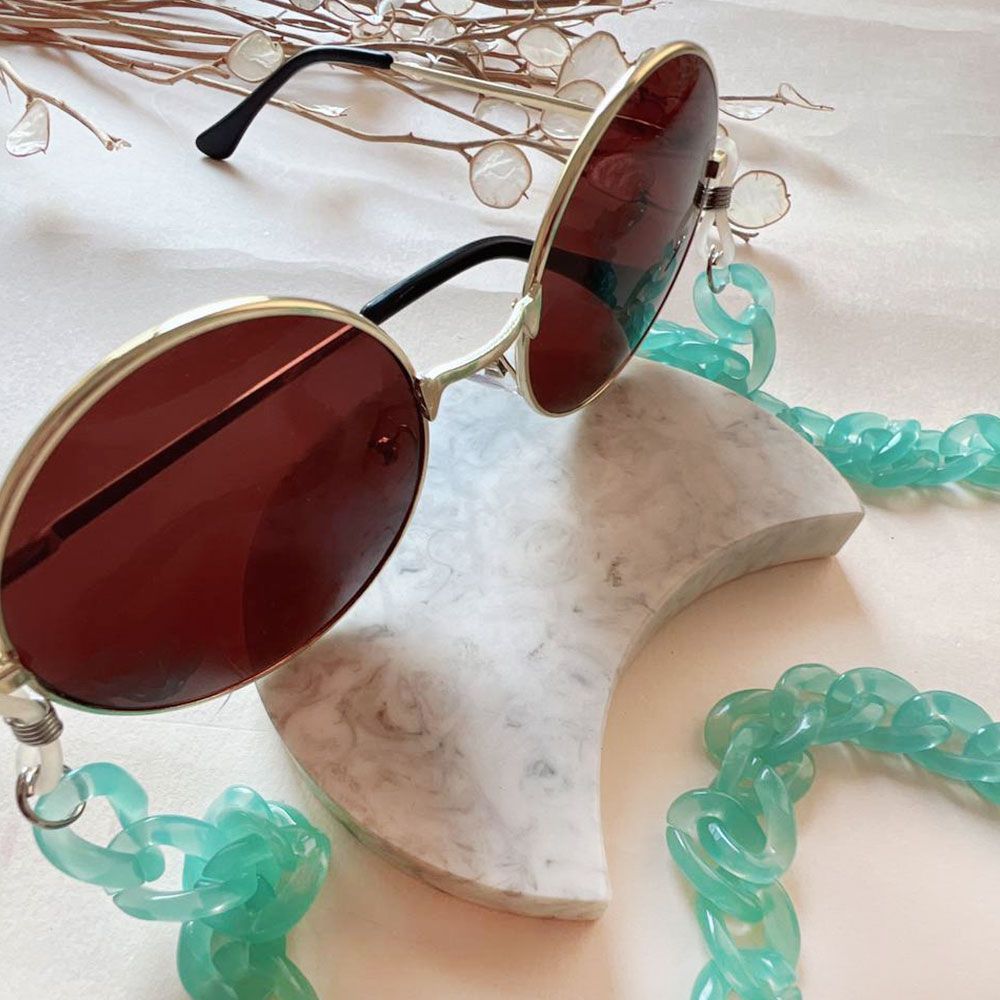 عینک شیشه گرد طلایی همراه با بند عینک تیسا اکسسوری
